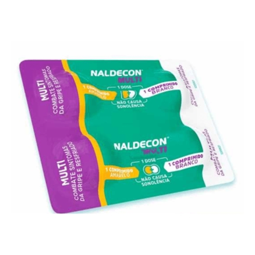 Naldecon Multi 4 Comprimidos É UM MEDICAMENTO. SEU USO PODE TRAZER RISCOS. PROCURE O MÉDICO E O FARMACÊUTICO. LEIA A BULA. SE PERSISTIREM OS SINTOMAS, O MÉDICO DEVERÁ SER CONSULTADO. Não use este medicamento em caso de doenças do coração, pressão alta e glaucoma. Não use junto com outros medicamentos que contenham paracetamol, com álcool, ou em caso de doença grave do fígado.